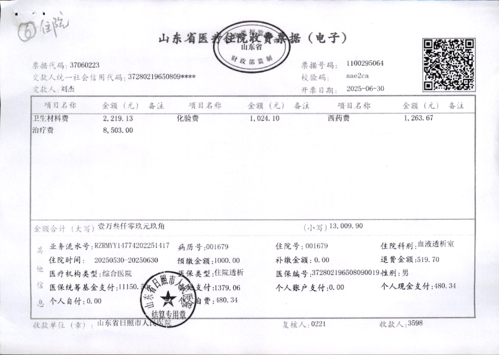 医疗门诊收费票据