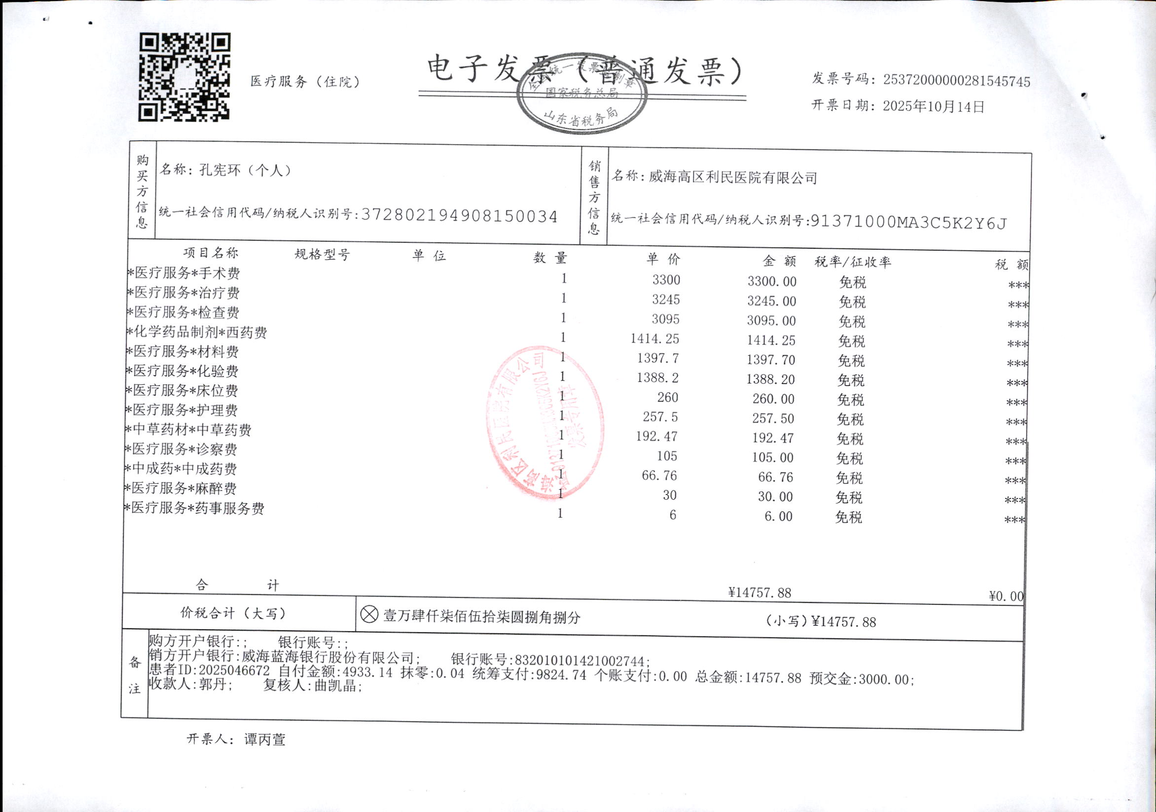 普康健康_私人医院发票