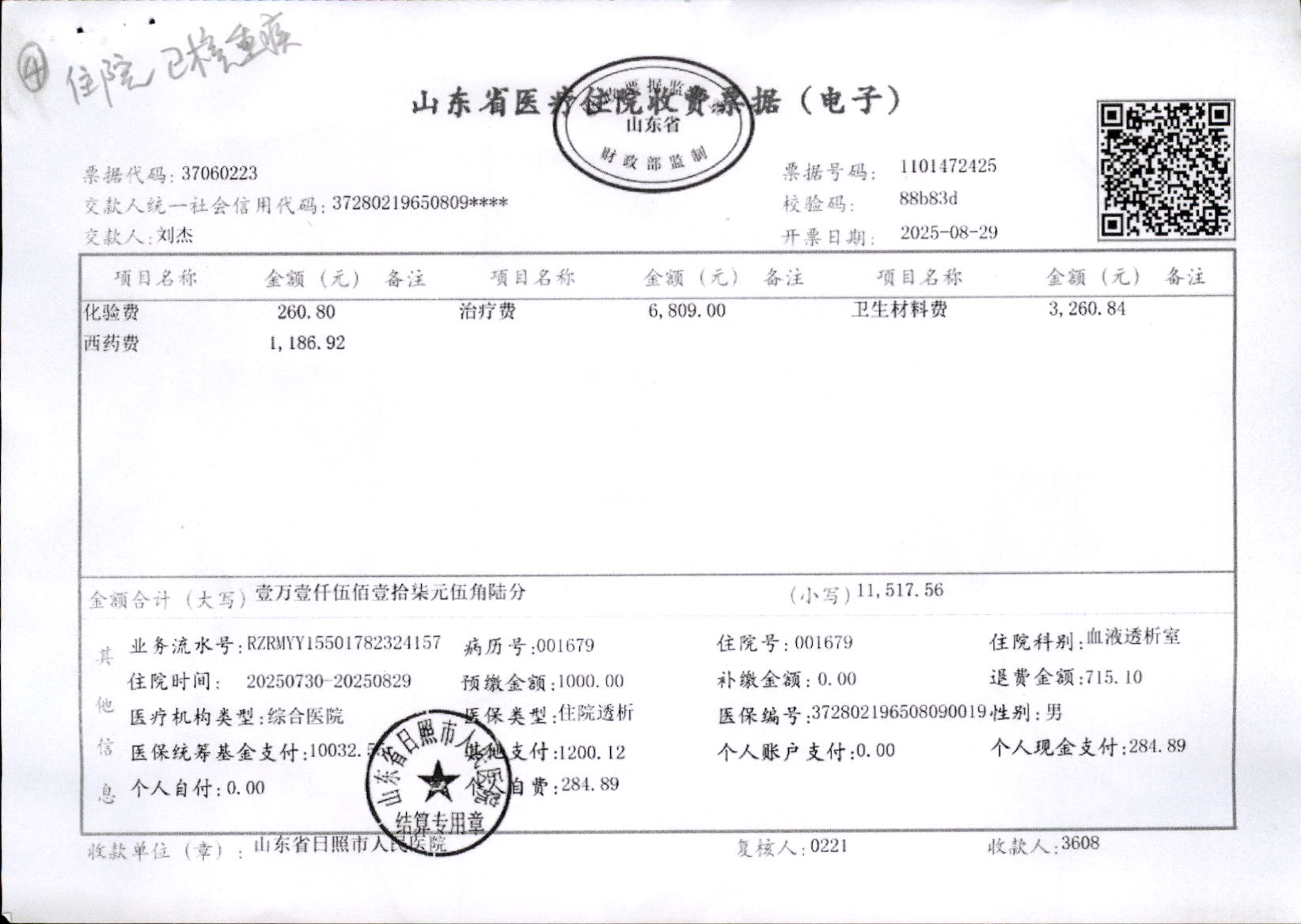 医疗门诊收费票据