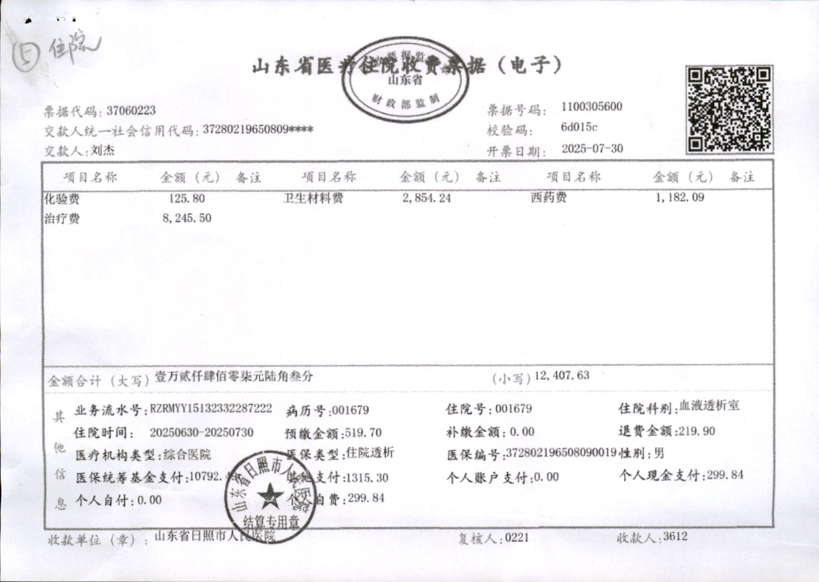 医疗门诊收费票据