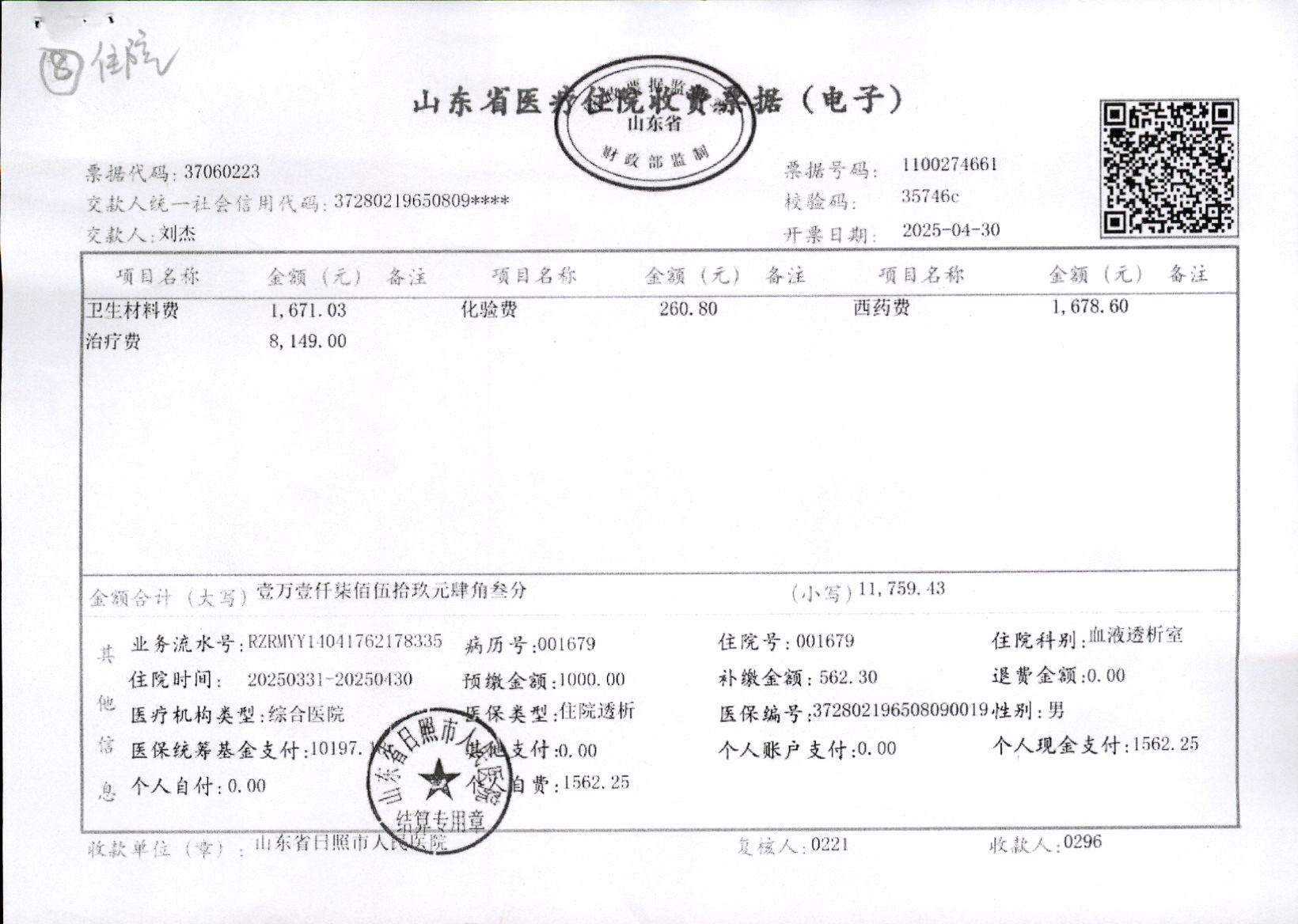 普康健康_私人医院发票